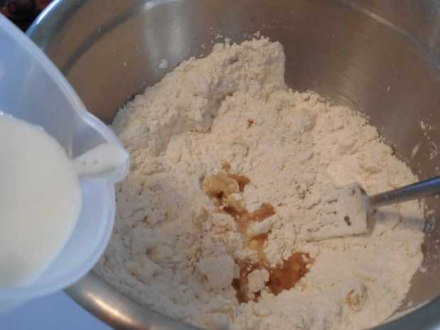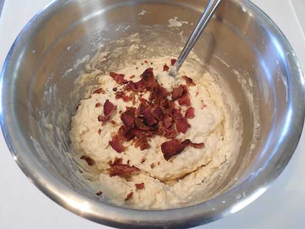 Romper el tocino en trozos pequeños y doblan en masa de galleta.