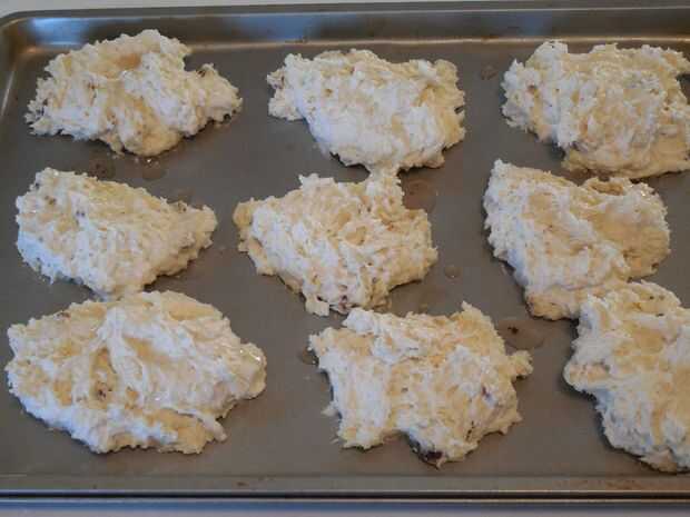 Tomar las galletas con un poco de aceite y fulls de la cuchara de la masa de la gota. (Usted puede rodar y recortar si quiere bonito y uniforme) Sólo quiero comer.
