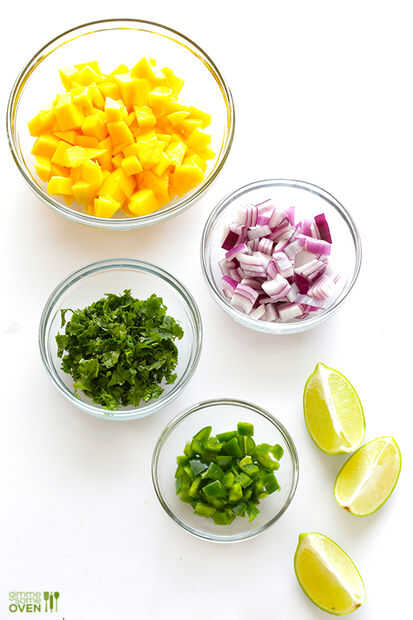 Salsa de mango es algo que no hago muy a menudo, pero es un bonito cambio de salsa o guacamole. Esta es una receta base agradable para él, una vez que has hecho se puede personalizar muy fácil.Pepino, jícama y pimientos rojos también añadir gran sabo