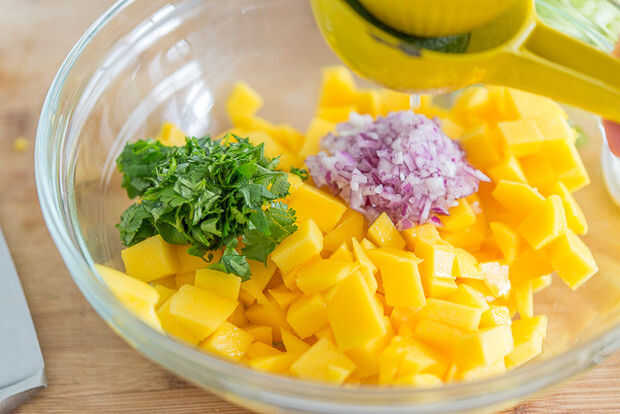A'Gogo Salsa de Mango frescoEn combinación con pescado fresco del Pacífico es una colisión de Pac Rim So Cal tan bueno. Chop Chop fresco y rápido usted nunca irá mal. Que necesitan para parecerse a un profesional para impresionar. Tirar este sabroso