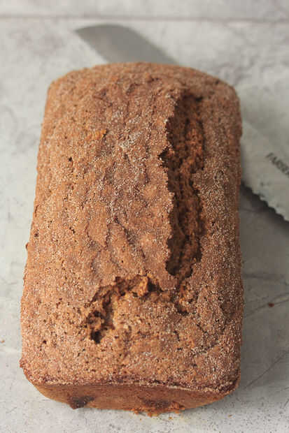 Las indicaciones de la receta: PRECALIENTA el horno a 350 grados. Engrasar el molde y reservar; en un tazón mediano mezcle hasta combinar los ingredientes secos. En un bol grande añadir huevo, azúcar de coco, extracto de vainilla y compota de manzana. Mezclar hasta que todos los ingredientes forman una masa suave. Agregue los ingredientes secos para mojar los ingredientes y mezclar hasta combinar. Lentamente revuelva con la leche la masa hasta que quede suave. Verter la mezcla en el molde y espolvorear un poco de azúcar sobre el pan. Coloque en el horno durante 1 hora o hasta que una selección de diente insertada en el centro del pan salga limpio.