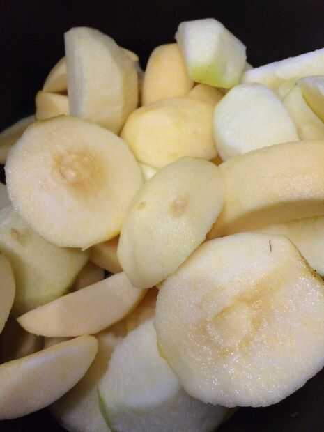 Como todos sabemos la peladura de la manzana es un poco tediosa pero tienes que hacerlo de todos modos :(apenas pele sobre 12 o así que las manzanas y los cuartos una vez que termines. Ponerlos en la olla ahora :)