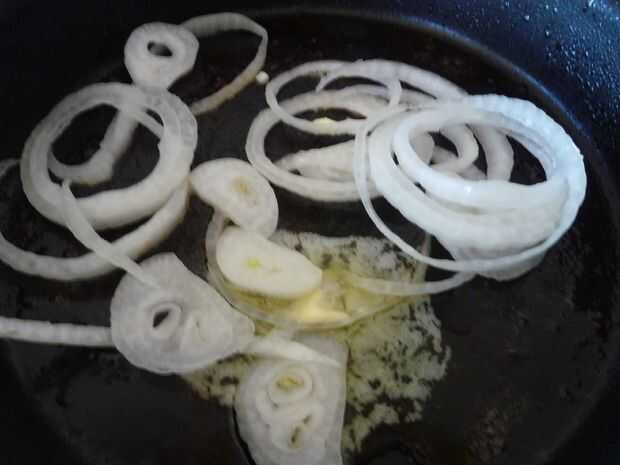 Cortar la cebolla finamente y agregar a la sartén. Reducir el fuego a bajo. Saltear y revolver la cebolla hasta que estén suaves y profundamente carmelized.