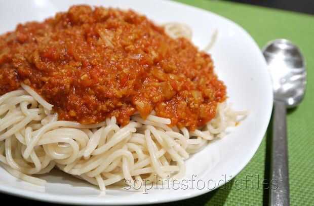 El ayer por la noche hice a esta vegana sabrosa salsa para pasta. Sirve con espagueti de espelta semi integral. He añadido algunas verduras también, por supuesto! En lugar de picada real, usé carne picada de seitan vegano! Me encanta pique de seitán en verdadera carne de cerdo y ternera picada de todos modos. Y así es cómo lo hice.