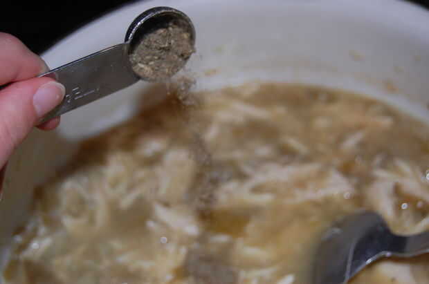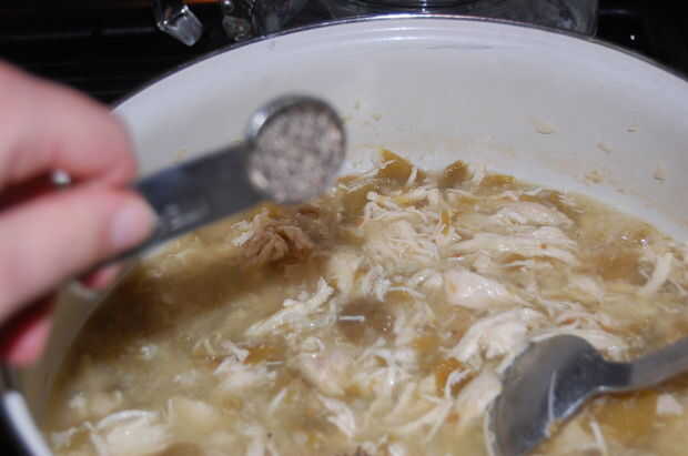Agregar los chiles verdes, (después de verter en pone unas cucharadas de agua en la jarra y remolina alrededor para salir cada poco) ajos, pimienta, salvia, pimentón y polvo de Chile.