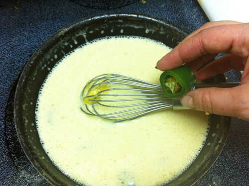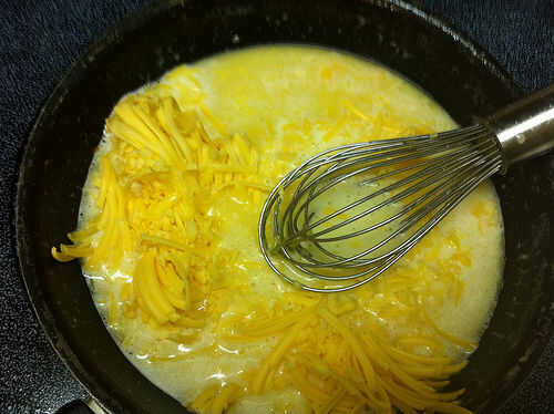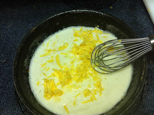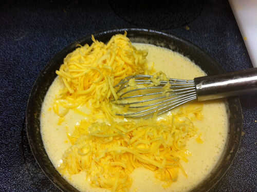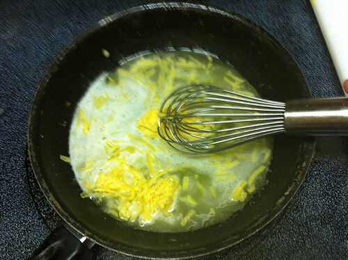 He rallado el queso cheddar, añade algo de agua a la mezcla de supuesta citrato de sodio en la estufa (algunos bicarbonato de sodio mantienen colocar fuera de la solución) y se calienta la sartén. Como hacer fondue, he añadido el un puñado de queso a la vez, batiendo a menudo y manteniendo el calor debajo de hervir.