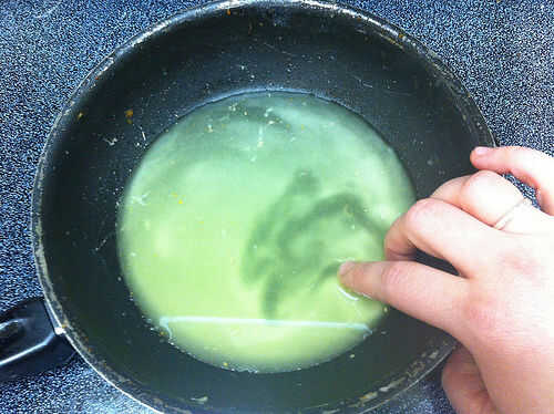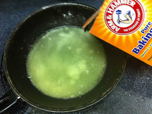 Exprime dos limones, que resultó ser demasiado, pero supongo que alguien va a comer el resto de la salsa sobrante. Entonces agregué bicarbonato de sodio, poco a poco, hasta que la mezcla de espuma. Probablemente se suponía que ese tipo de cosas se evaporan y utilizarlo con queso y líquido para hacer una salsa, pero yo soy Cruncheando para hoy.