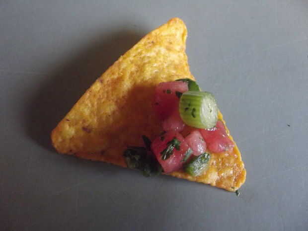 Esta salsa es tan ligero y fácil de hacer. Va bien con un montón de alimentos veraniegos, pero es genial con solo chips!Paso 1: ingredientessandía de 2 c. libre de semillas, en cubos2 cucharadas picada cebollachile de Portilla finamente picado 3 cdas