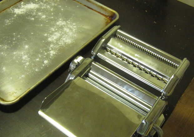 * Usted también necesitará una máquina de pasta y una hoja de galleta para hacer la pasta y póngala secar.