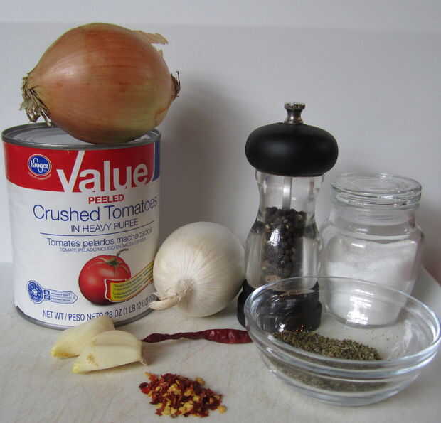 Usted notará no pongo medidas exactas para muchos de los ingredientes - que vas a hacer pellizcos aquí y allá a su gusto. Si te gusta la salsa de tomate dulce, añadir albahaca extra. Si te gusta más fuerte salsas de tomate, añadir más orégano y los chiles.