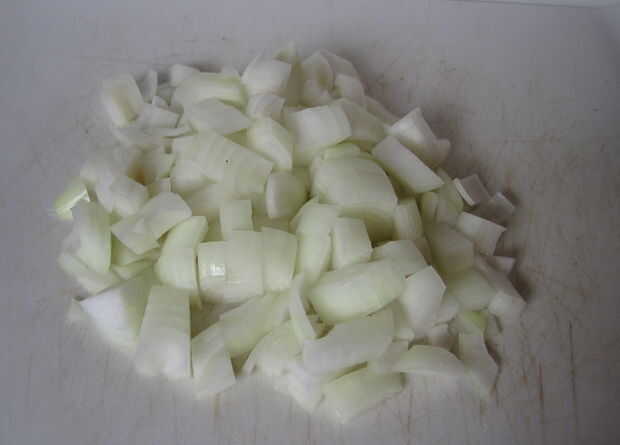 Puede picar la cebolla también - es todo gustos personales. Incluso conozco gente que ralla la cebolla - todo depende de usted.