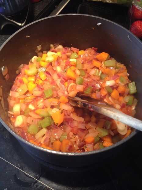 Dejar a fuego lento durante un buen de 20-30 minutos hasta que las verduras se ablanden.