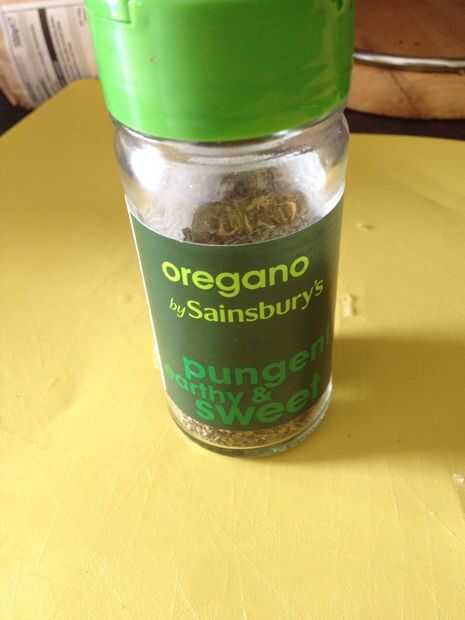 Agregue aproximadamente una cucharada cafetera de orégano seco, más o menos a gusto.