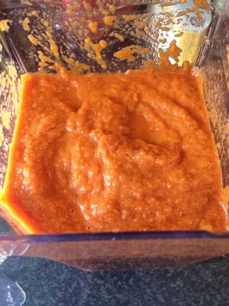 Una vez que la salsa esté lo suficientemente fría como para mezclar (no queremos salsa picante se desparramaron alrededor) o transfiera a una jarra licuadora o dejar en la sartén.