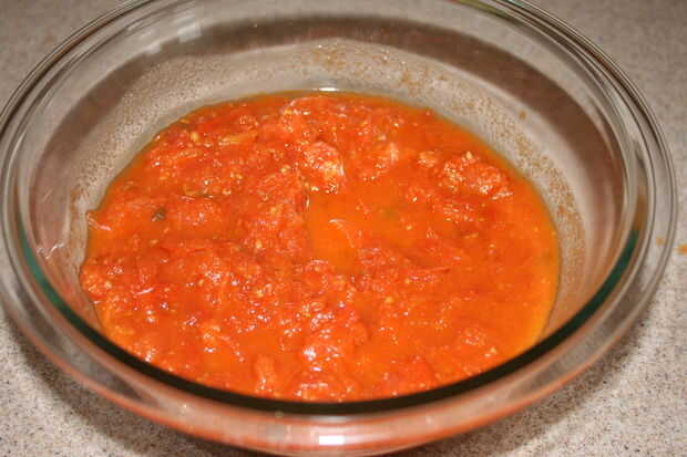 Aquí está la salsa después de terminado el ciclo y refrigerado por el pan. (Puede ser muy caliente, así que esperar antes de intentar sacarlo de la máquina de pan).
