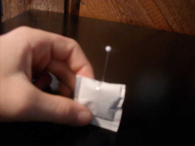 Usar la aguja para meter un pequeño agujero en el centro de cada paquete