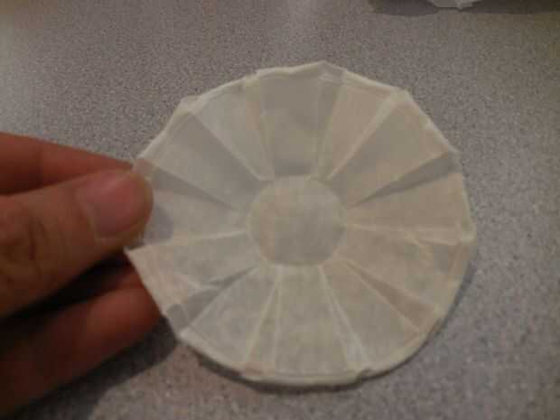 Ampliar el tamaño de la taza de papel tirando poco a poco el borde exterior