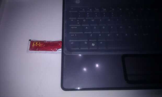 2) cubre su USB con cinta para protegerlo. Luego uso doble cara cinta adhesiva para pegar el disco a la portada del segundo paquete.