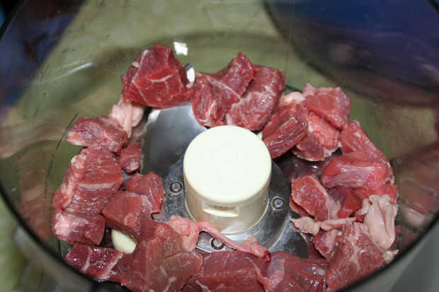 No pongo más de una media libra de carne en el procesador de alimentos a la vez, simplemente porque no quiero sobrecargarlo. Ya que eso significa que voy a ser cuatro lotes diferentes, tengo un diente suelto corte de ajo para cada lote. ¿Digo que amo el ajo? Estoy seguro de que hice.