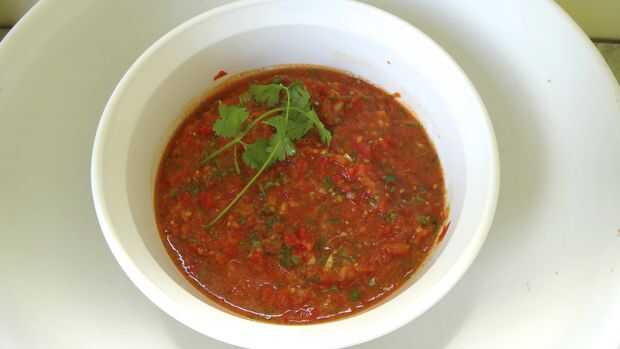 En un bol añadir la salsa cocida a la salsa cruda. Apriete cal allí y ajustar el condimento. Añadir un jalapeño o dos si te gusta el calor. Refrigerar durante unas horas concentrar los sabores.