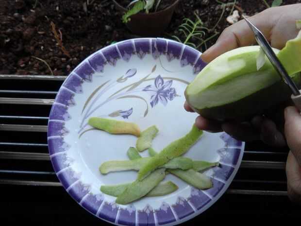 Despegue la piel del mango.
