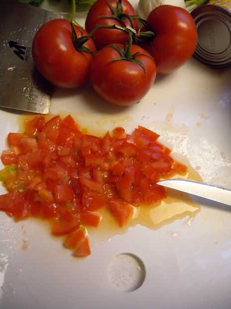 yo no soy muy bueno en este paso a pesar de cortar estas cosas con bastante frecuencia.  A menudo a picar algunas y luego pasar a algo diferente de la salsa y luego regresar a ellos.  Los tomates son tan aburridos.  Y después de un tiempo comienzan a tipo de quemar mi piel.