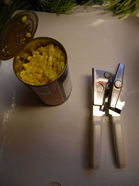 tengo un amigo que odia que pongo maíz en mi salsa - también no podría como él.  Usar enlatado maíz porque el maíz es un poco más estacional que el resto de los ingredientes.  Cortar la tapa pero dejar una bisagra para que usted fácilmente puede drenar el maíz antes de volcar hacia fuera.