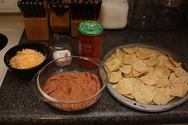 Salsa, frijoles y Nachos de queso dos (1 / 6 paso)