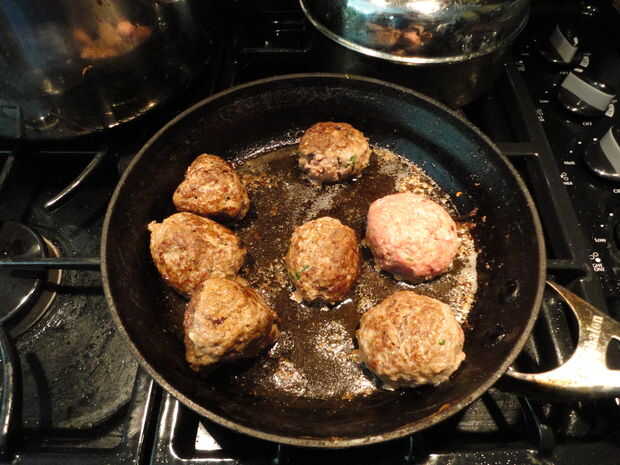 Cuando se fríe algo, el aceite caliente en la cacerola le encanta fizz hacia fuera y quemar, albóndigas no son la excepción, así que ten cuidado. Poner la sartén en la estufa, la estufa en medio de la calefacción. Salpicar el aceite abundantemente sobre el pan; Recuerde que usted tendrá que añadir algunos más adelante. Una vez está chisporrotear el aceite, agregar las albóndigas crudas que son uniformemente alrededor de la bandeja. Cuidadosamente gire cada albóndiga se convierte en dorado, tratar de ver si el interior es de color rosado sin rasgarse aparte y si se trata de mantener en la bandeja hasta que darse en el interior. Una forma útil a si una bola de carne se realiza o no es apuñalar con un tenedor y lentamente tire de la horquilla, si la albóndiga se quedó en la horquilla hacia abajo y luego lentamente se realiza diapositivas apagado, luego la albóndiga. Sin embargo, si la albóndiga se queda en la horquilla y no se deslice lentamente hacia abajo, entonces debe quitarse el calor inmediatamente. puede ser demasiado. Recuerde que una bola de carne quemada es una albóndiga mal sabor, así que, intenta no bollo les.
