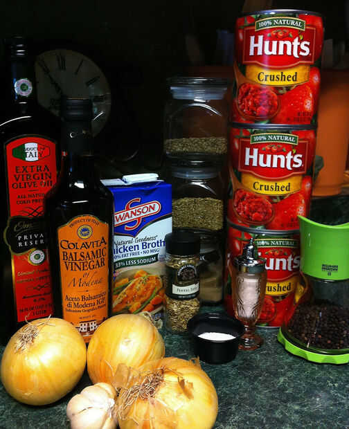 A cargo de una tienda de comestibles de tres latas de 28 onzas de tomates triturados, un buen puñado de