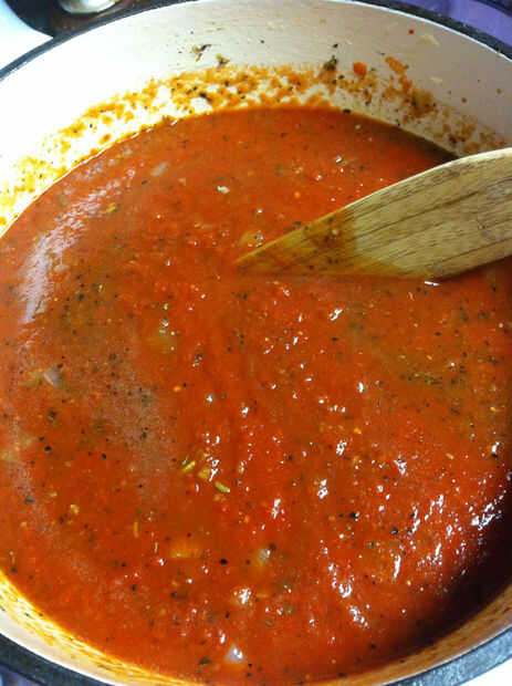 Revolver bien, poner la salsa a hervir sobre fuego medio, revolviendo ocasionalmente.