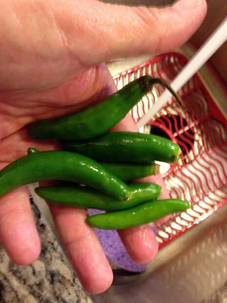 Madre Lave y quite de chiles serranos. Me gusta usar 2 pimientos al tomate para que sea suave o 10 pimientos al tomate para que sea más caliente.