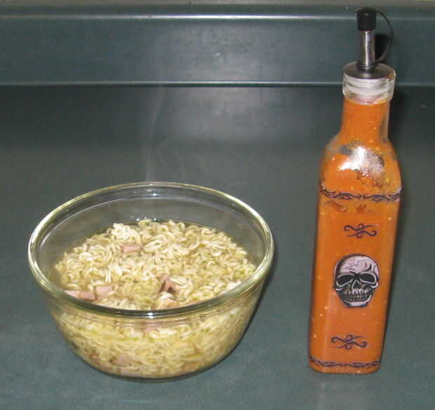 Si desea agregar un poco especia a fideos orientales o pizazz a un simple plato de huevos maíz carne y papas a la casa, esta salsa picante añadir color y sabor a un plato soso. Fácil de hacer puede hacer este plato en una hora con poco revuelo aparte cocinar la salsa fuera para proteger su casa contra los gases pimienta fuerte.