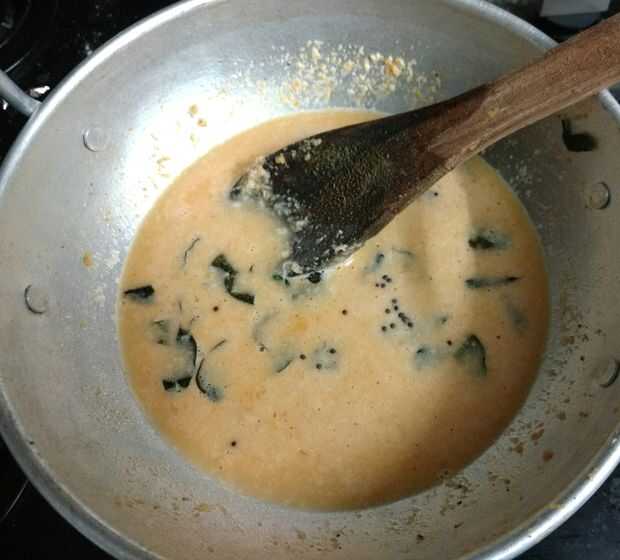 Cuando cebolla se dore, añadir la pasta de coco molido. Mezclar bien.