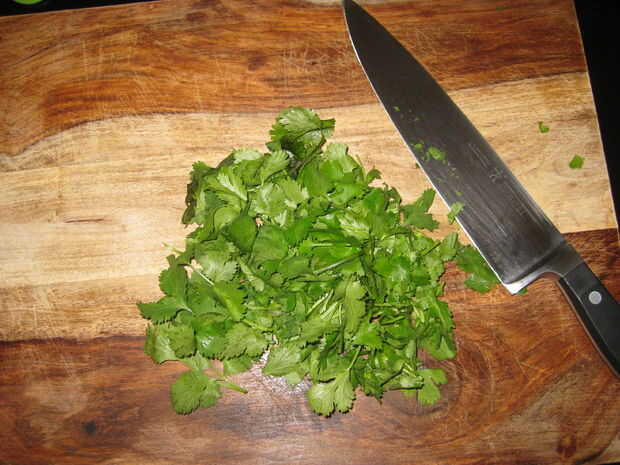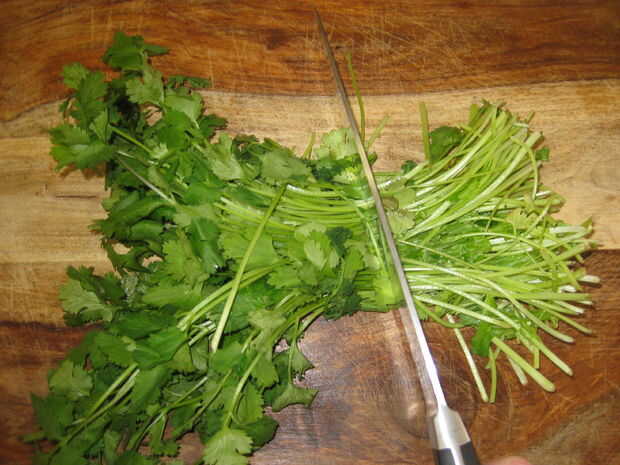 1. En primer lugar, asegúrese de que el cilantro se lava. Para hacer esto, simplemente enjuáguelo en el fregadero con agua fría.