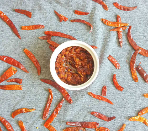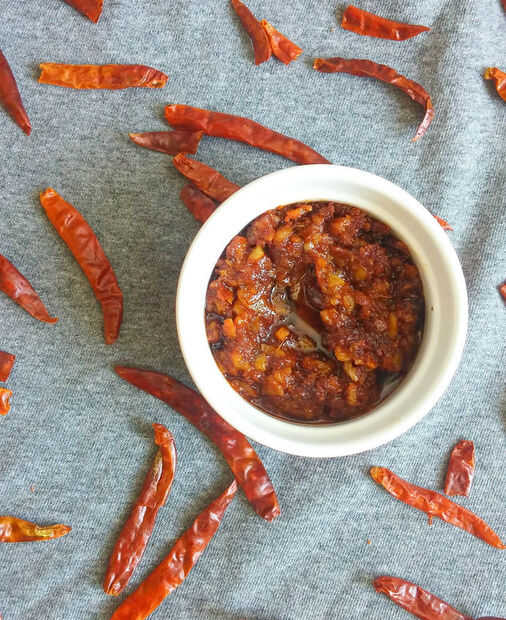 Salsa de Sichuan salsa Szechwan, es salsa super picante que es originario de la provincia de Sichuan en el suroeste de China. Tiene sabores audaces, particularmente la acritud y picante resultando de uso liberal de ajo y chiles, así como el sabor de la pimienta de Sichuan (fuente: wiki). No pude encontrar pimienta de Sichuan, usé chiles rojos secos normal. Usted puede hacer muchas recetas con esta salsa como arroz de Szechwan, fideos de Szechwan, etc... Esta salsa se mantendrá buena hasta un mes si puedes almacenarán y utilizar adecuadamente.