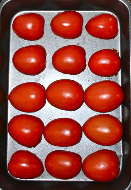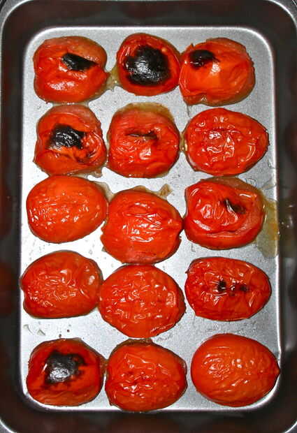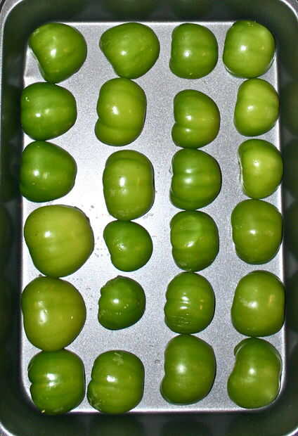 Inicio con 8-12 roma tomates y tomatillos de 8-12. Quitar las cáscaras de los tomates y cortar tanto a ellos como a los tomates por la mitad y coloque el lado del corte hacia abajo en dos bandejas independientes. Coloque las bandejas en el estante superior y asar a la parrilla en alto durante 5-10 minutos hasta que las puntas empiezan a difamar. Conjunto a un lado para refrescarse.
