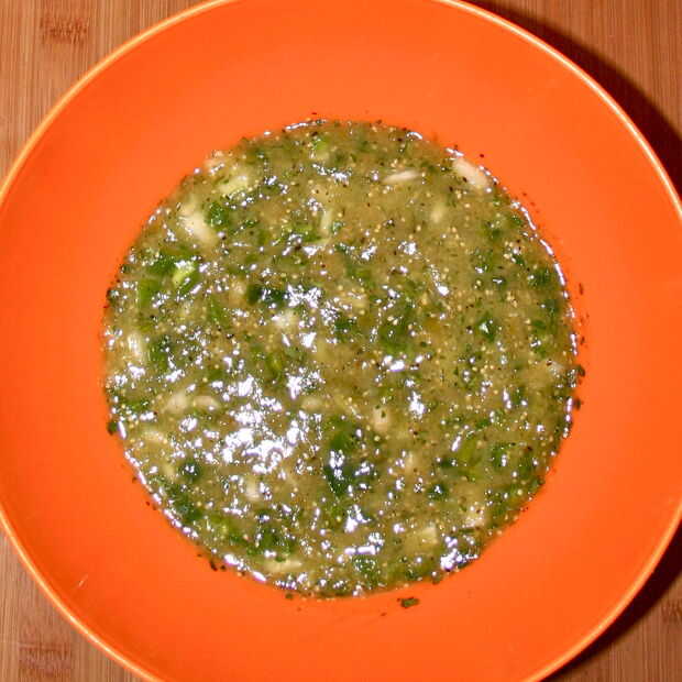Vierta la salsa verde acabada en el recipiente elegido y tienda en el refrigerador.