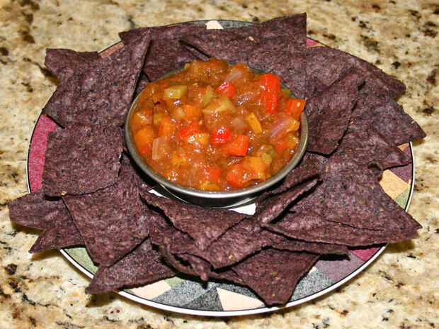Para pico de gallo en lugar de salsa roja, omitir la cebolla roja, pimientos, pimienta y comino y se abstengan de asar los tomates previamente y cocer a fuego lento la salsa una vez que se mezcla.