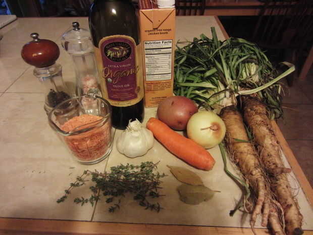 Esta carne, zanahoria y chirivía caña sopa es la sopa perfecta para frío, nieve o día de lluvia. Lleva muy poco tiempo activa, pero hierve a fuego lento en la parte posterior de la estufa durante cuatro horas, perfumar toda la casa. Los ingredientes