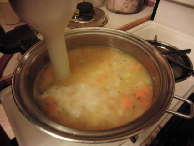Esta carne, zanahoria y chirivía caña sopa es la sopa perfecta para frío, nieve o día de lluvia. Lleva muy poco tiempo activa, pero hierve a fuego lento en la parte posterior de la estufa durante cuatro horas, perfumar toda la casa. Los ingredientes