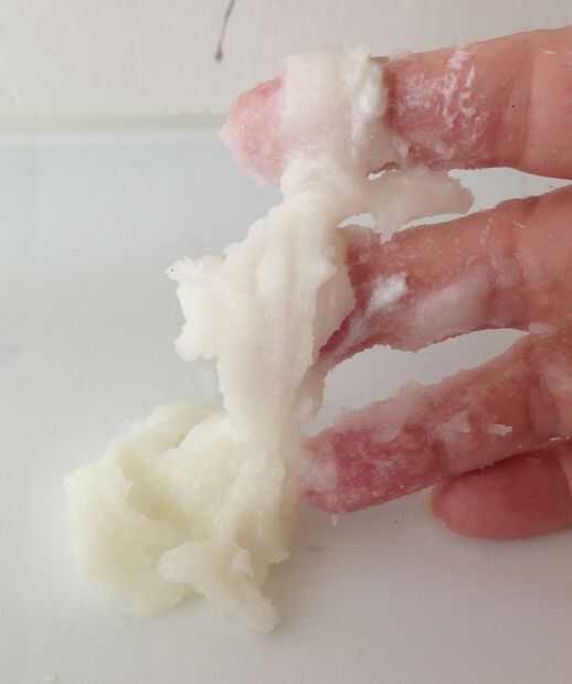 Cuando lo hizo antes, era una consistencia granulada, muy suelto y blanco casi puro. En cuadro #3 se puede ver un ejemplo de esto. Esta foto fue tomada alrededor de una semana más tarde, para mostrar cómo la mezcla se había convertido en acuoso y pegajoso. Mi plan era tomar una foto para mostrar lo que parecía antes cuando hice otra vez. Así que, Imagínense esto sólo un poco más grueso.