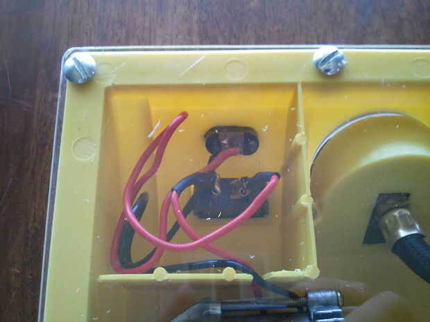 2) volver a los conductores de alambre el nuevo conector de alimentación. El motor del compresor pequeño sólo debe tener un alambre caliente y de tierra. Ahora se conectarán los cables que estaban conectados a la batería en el puente al puerto nuevo.