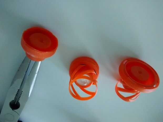 Utilizará un cortador o cuchillo para pelar el borde que va sobre el borde del tubo y también la parte espiral, tal como ve en la imagen, así como sacar el tapón de papel pequeño que sostiene algunas píldoras hidrófobas (además esto asegurará que sonidos extras no salen las asas).