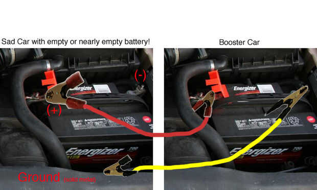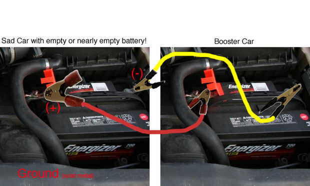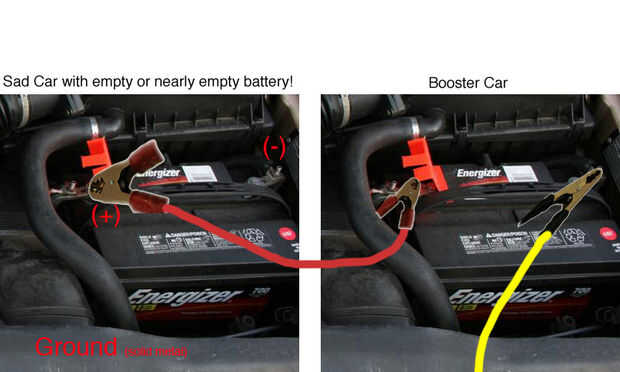 (Si los pasos no logran el éxito que sólo tiene que conectar el segundo extremo del cable negro al terminal negativo de la batería muerta - pero ser cuidadosamente). Mientras se conecta, puede haber algunas chispas. Ten cuidado pero es un proceso normal.