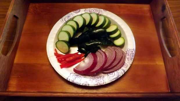 3. 1/4 cebolla roja grande (1/2 pequeña), en rodajas de 1/2 lunas