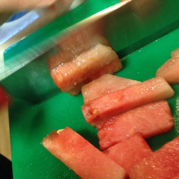 • 2 tazas de sandía, cortada en trozos de 1 pulgada aproximadamente