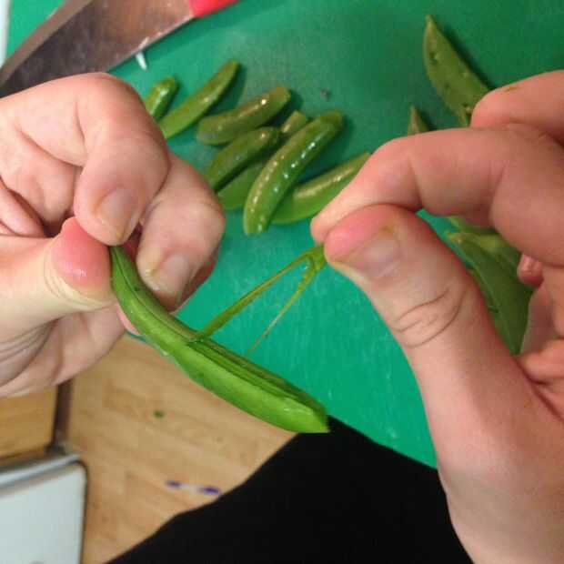 • 2 tazas snap peas, recortados, las grandes cortadas por la mitad en un sesgo