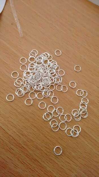 Todo lo que necesitas para este proyecto son algunas anillas... Yo tengo la mía para $0,33... Hay sobre 150-200 anillos allí. Compré el 0.5 cm anillos de diámetro. Usted puede comprar cualquier tamaño dependiendo de tus gustos...