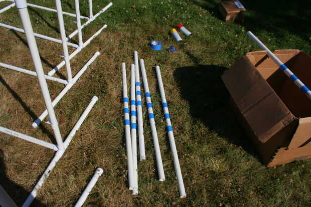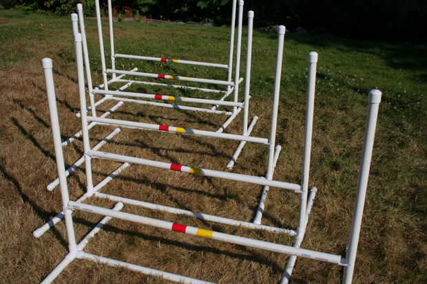 Quería hacer algunos saltos de agility del perro de un amigo que trabaja en la formación de sus perros.He visto simple PVC perro agilidad saltos y pensé sería fáciles de poner juntos, pero no estaba seguro de cómo hacer ajustable.Hice algunas investi